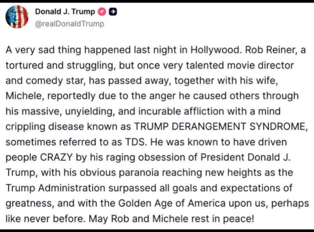 I thought about this recently when Donald Trump posted about Rob Reiner on Truth Social.