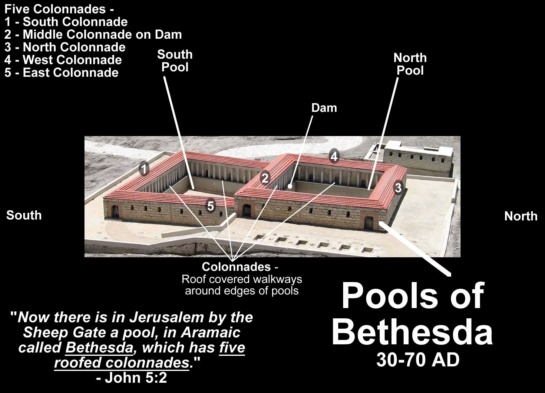 The same can be said about the New Testament. The archaeological evidence that has been found is remarkably specific. In John’s Gospel it describes the Pool of Bethesda near the Sheep Gate as having five covered colonnades. Well, in the late nineteenth century, excavations uncovered exactly what John described. They found a double pool with four colonnades around the edges and one in the middle. Five colonnades. John was describing an actual place he’d actually seen. How cool is that?